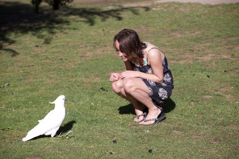 Auf dem Campingplatz und drumherum gab es Schwärme von lustigen und sehr zahmen Papageien, die überall dort waren, wo es was zu Essen gab. Und kaum zu glauben: Am Abend hüpften mindestens 50 meiner putzigen und überhaupt nicht scheuen Verwandten auf dem Campingplatz herum. Flo und Simona kamen mit dem Fotografieren nicht hinterher und später kaum in ihr Auto, weil das rundherum von Kängurus belagert war. 🙂