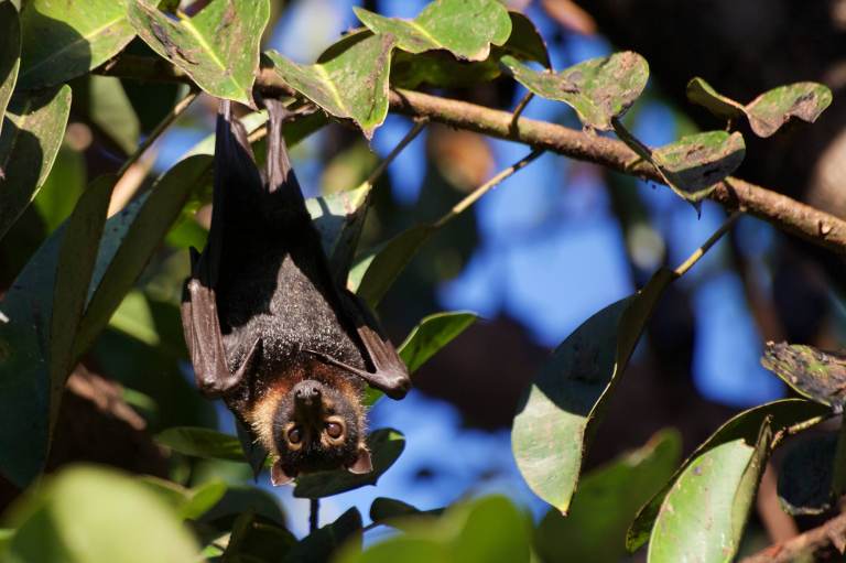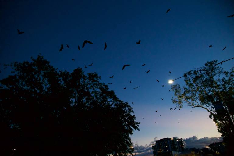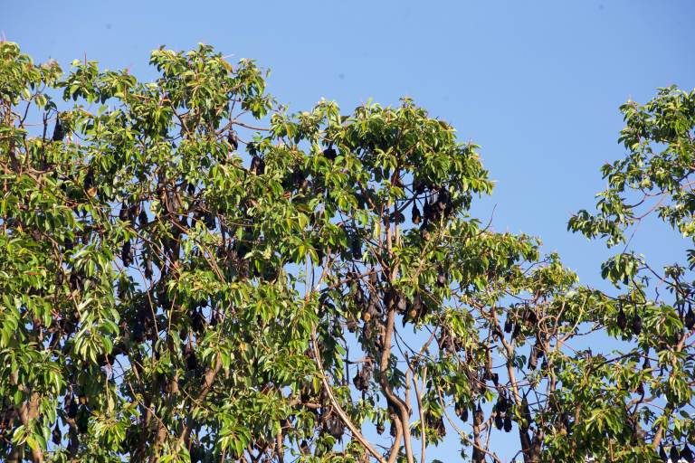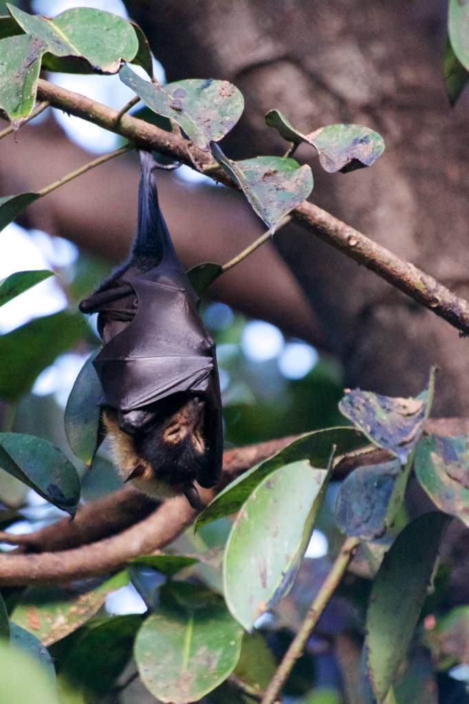 Wir sind auf dem Weg zurück nach Cairns, da wir unseren großartigen Reisebegleiter Sweetie (unsere treuer Campervan) am Samstag Morgen (28.3.) zurückgeben müssen. Schon schade, dass wir ihn nicht einfach im Gepäck mit nach Deutschland nehmen können. Cairns ist eine mittlere Kleinstadt (circa 130 000 Einwohner, siehe http://de.wikipedia.org/wiki/Cairns) in den australischen Tropen. Da kann man nicht mehr so einfach schwimmen gehen, hier gibt es Quallen mit fiesen Tentakeln und Krokodile in allen Größen. Weil die Rettungsschwimmer in Cairns keine Lust haben dauernd irgendwelche Leute vor Quallen und Krokodilen zu retten, haben sie in eine Lagune angelegt, ein großes Freibad in Strandnähe mit Sand und allem. Das ist quasi wie im Meer schwimmen nur ohne fiese Tiere. Dahin sind Simona und Florian gerade unterwegs um sich eine kleine Erfrischung zu gönnen. In diesem Urlaub sind besondere Tiere immer dann aufgetaucht, wenn man am wenigsten mit ihnen gerechnet hat. So auch dieses Mal. Das Navi plärt gerade: „Links abbiegen in die Beaasche S-T“ da kommen komische Geräusche aus den Bäumen. Ein Blick hinauf: Dort hängen tausende von Fledermäusen. Also beschließen Simona und Florian kurz anzuhalten und Fotos zu machen. An einem dort angebrachten Schild heißt es: Die „Fruit-Bats“ (Früchte-Fledermäuse) fliegen alle gemeinsam nach Sonnenuntergang in die Berge und fressen dort die Früchte in den Bäumen. Sie sind reine Vegetarier. Klar, dieses Naturspektakel müssen wir uns anschauen. Und wirklich kaum ist die Sonne untergegangen geht das Spektakel los. Als wir das Video gemacht haben, hängen die Bäume trotzdem noch voll. Es müssen mehrere hunderttausend-Fledermäuse sein, die dort in umgefähr 5 Bäumen an einer Straßenkreuzung in Cairns hängen. Gut, dass die Geruchsspur bei Videos noch nicht eingeführt ist. Der Gestank ist bemerkenswert. Danach wird dann doch noch in der Lagune gebadet, denn die hat bis Mitternacht auf und ist im Dunkeln wunderschön beleuchtet. Und das Beste: Es gibt eine warme Dusche danach (denn wenn es in der Dämmerung auf 28 Grad abkühlt, kann es nach dem Schwimmen schonmal frisch werden ;-)).
