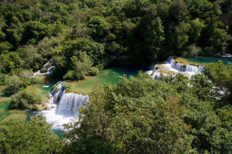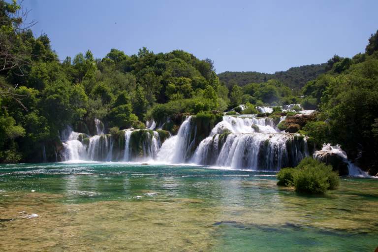 Da wir die Insel Krk etwas karg finden, fahren wir am nächsten Tag wieder ans Festland und an der Küste entlang ein ganzes Stück nach Süden. In der Nähe des Krka Nationalparks suchen wir uns einen kleinen Campingplatz. Am nächsten Tag fahren wir schon früh zum Park – in der Hoffnung, dass so früh noch nicht so viele Leute unterwegs sind. Hier gibt es wunderschöne Wasserfälle und kristallklare Seen, der Park ist uns jedoch viel zu touristisch. Die kleine Wanderung am Fluss entlang zu den Wasserfällen und wieder zurück ist der schönste Teil unseres Besuchs, da die meisten Touris das Boot nehmen anstatt zu laufen. So sind wir zumindest für diesen Teil des Tages allein. Zum Übernachen fahren wir an den Hafen der Bucht von Vinisce. Hier kann man gut frei stehen. Wild campen kann man es nicht nennen, denn auch diese Bucht ist – wie viele Teile Kroatiens – ziemlich bevölkert und zugebaut. Ab und an hat ein Architekt sein Unwesen getrieben und einen Betonbunker in die Landschaft gesetzt, um möglichst viele Hotelgäste auf möglichst kleinem Raum zu beherbergen. Zudem gibt es einfach überall eine Baustelle. Neben unserem Auto zum Beispiel versuchen gerade zwei Männer, ein altes Schiff auseinanderzusägen und zu -flexen. Trotzdem schlafen wir tief und fest. In den nächsten Tagen werden wir weiter Richtung Süden fahren, um unser südlichstes Ziel zu erreichen: Dubrovnik, die „Perle der Adria“.