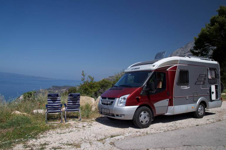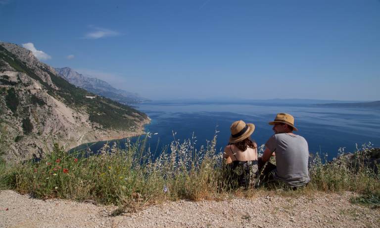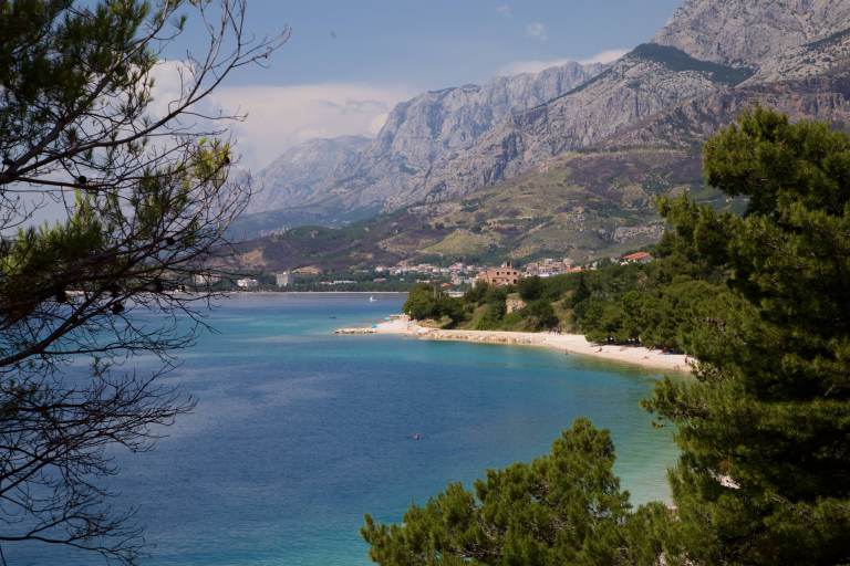 Unser erster Stopp in Richtung Norden ist Marakaska. Der Ort ist wunderschön an den Hängen des Biokovogebirge gelegen, aber leider auch ziemlich zugebaut. Wir finden trotzdem einen wunderschönen Stellplatz ca. 300m über dem Meer an einem Picknickplatz. Von hier aus sind es nur noch ca. 3km zum Eingang des Biokovo Nationalparks, wo wir morgen Früh unsere Wanderung zum Sveti Jure (1782m) starten möchten. Wir hatten eigentlich den Plan, noch bis zum Startpunkt der Wanderung auf 1300m Höhe zu fahren und dort zu übernachten, damit wir möglichst früh starten können. Aber der nette Nationalparkmitarbeiter am Eingang des Nationalparks erklärt uns, dass sich der Startpunkt bereits im Nationalpark befindet und übernachten dort verboten ist. Daran halten wir uns auch. Der alternative Stellplatz ist wunderschön mit phantastischer Aussicht. Wir kochen gemütlich und genießen den Sonnenuntergang und den Sternenhimmel. Simona klappt wie ein Taschenmesser mit dem TüV-geprüften Campingstuhl zusammen. Zum Glück verletzt sie sich dabei nicht, denn Flo möchte seine chirurgische Begabung nicht unbedingt ausprobieren. Beim Gedanken daran wird ihm schon ganz flau.