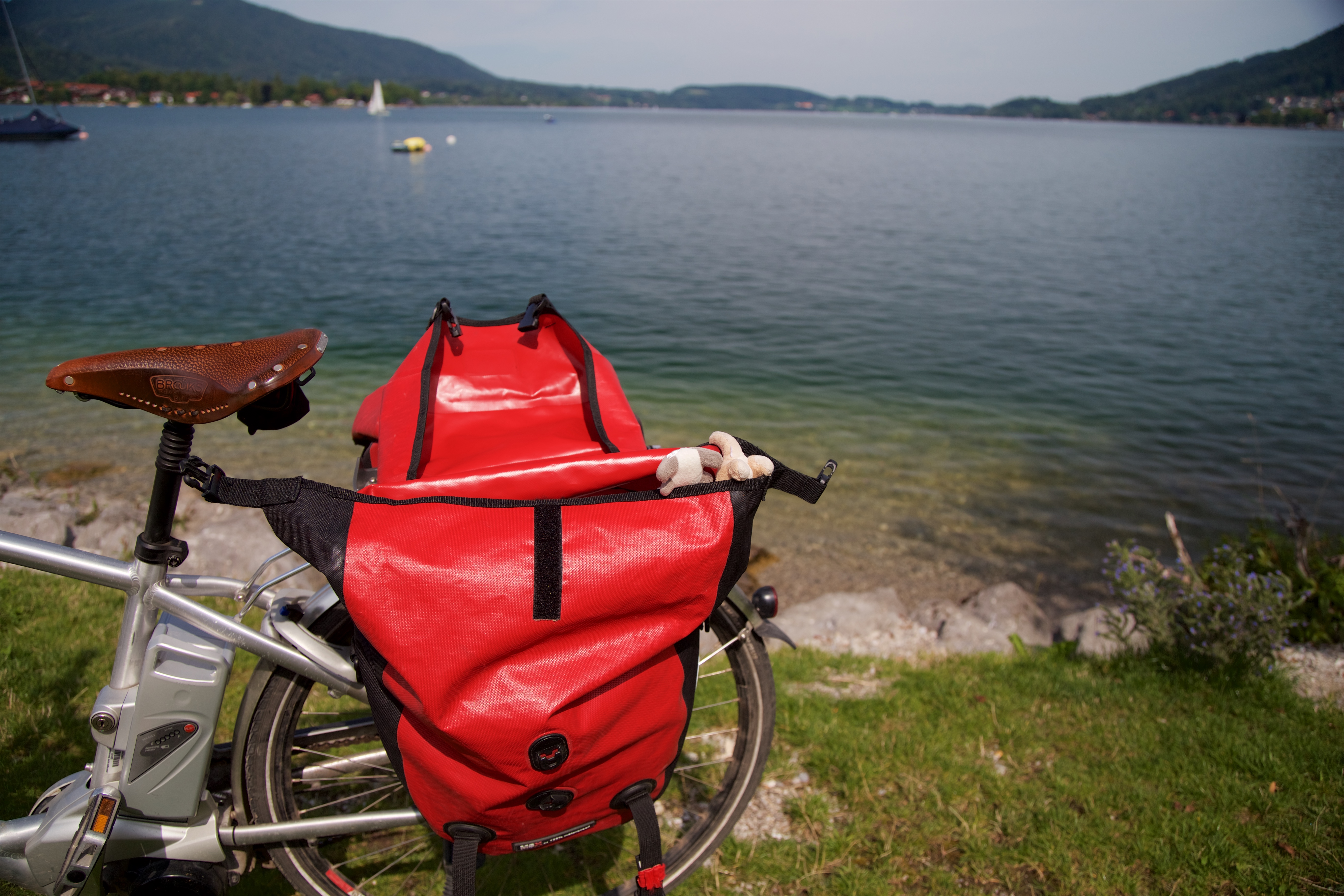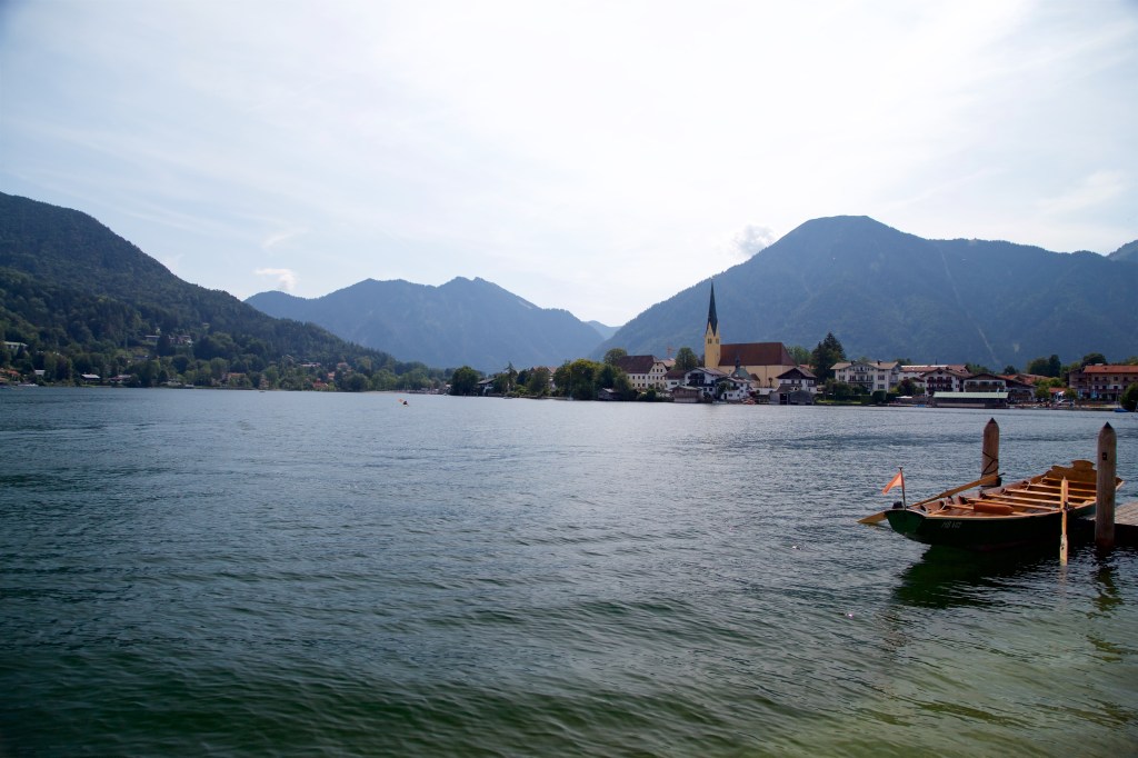 Den Käsekuchen für die Rast im Gepäck starten wir Richtung Tegernsee, dem Startpunkt unserer Alpenüberquerung. Die Fahrt verläuft ohne besondere Vorkommnisse. Der mitgenommene Käsekuchen von Simonas Mama wird auf dem Rastplatz gierig vertilgt. Während der Fahrt wird in den Nachrichten für den nächsten Tag Gewitter und ergiebiger Dauerregen für Bayern angesagt. Dank des immer laufenden Autoradios werden wir halbstündlich daran erinnert. Wir schieben den Gedanken daran, schon am ersten Tag fünf stunden lang mit dem Fahrrad durch den Regen zur fahren, beiseite. Das ist ein Problem von future Simona und future Florian. Am Tegernsee hat Flo für die Nacht vor dem Start der Fahrradtour und für den Abend der Rückkehr eine kleine, persönliche, gemütliche und ruhig gelegene Pension reserviert – Gästehaus Bartl. Wir laden die nötigsten Sachen aus und machen uns dann auf die Suche nach etwas zu essen. Wir landen in Rottach-Eggern auf der Terasse eines Restaurants am See und kommen uns intuitiv mit Outdoorjacke und Turnschuhen etwas fehl am Platz vor. Neben uns kämmt ein Lackaffe seinen Bart. Die neben ihm sitzende aufgetakelte Begleitung verzieht keine Miene dabei. Wir sind etwas verstört. Später erfahren wir, warum: Rottach-Eggern ist DER Nobelort am Tegernsee, wo auch die Fußballspieler Philipp Lahm und Manuel Neuer ihre Häuser gebaut haben. Aber auch in Turnschuhen und Outdoorjacke hat man etwas zu essen bekommen. Anschließend fallen wir totmüde in unser Bett mit – wichtig – einem knautischig-gemütlichen Kissen.