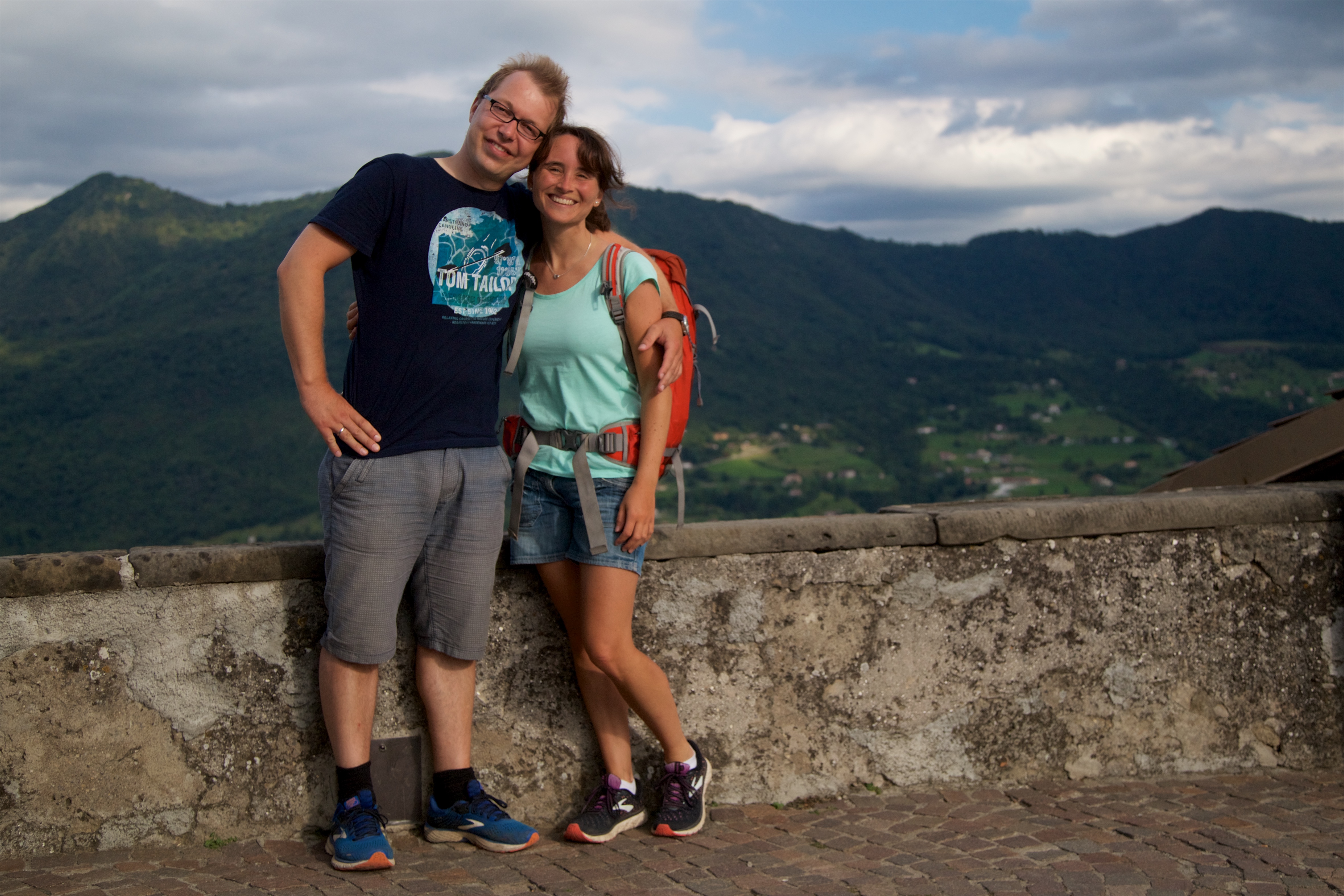 Simona und Flo sind im Urlaub im Berner Oberland und beobachten mehrmals während ihrer Urlaubswoche ein ca. 70-jähriges Ehepaar, das mit dem Moped die Berge hoch und runter fährt. Flo fragt Simona, ob sie zusammen mit dem Moped die Alpen überqueren, wenn sie in Rente sind. Aber warum nicht schon diesen Sommer mit dem (E-)Bike statt mit dem Moped, schlägt Simona vor. Da auch in diesem Jahr coronabedingt keine Fernreisen möglich sind, haben wir in den letzten beiden Augustwochen Urlaub. Die Pläne werden konkreter und wir starten am Sonntag, den 15.8.2021 nach einer Zwischenübernachtung bei Simonas Eltern zum Abenteuer Alpenüberquerung. Um dem Ganzen noch eine Spur mehr Genuss und Urlaub zu verleihen, haben wir die Etappen nicht zu lang geplant, zwei E-Bikes reserviert und für jeden Abend ein Hotel oder eine Pension vorgebucht.