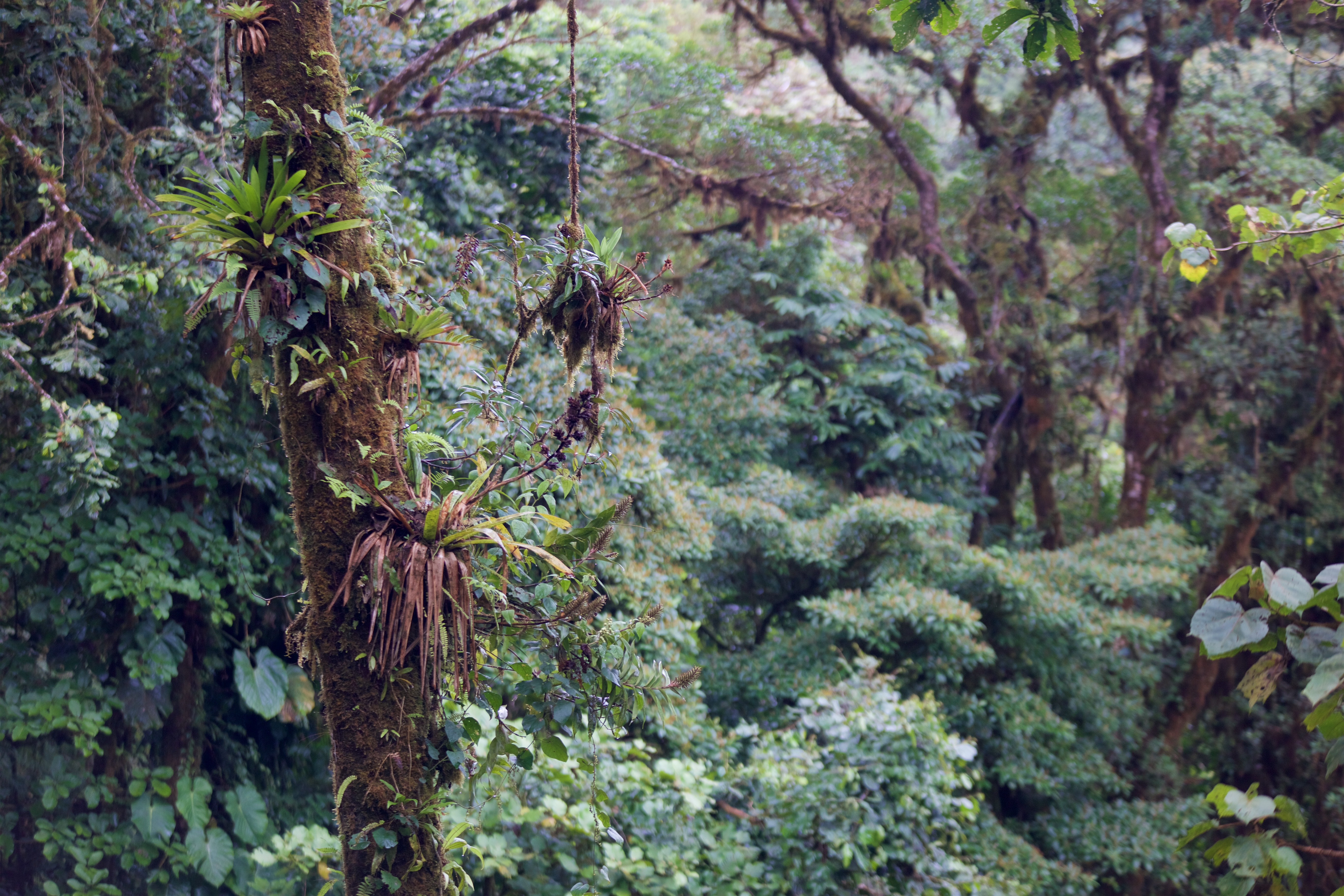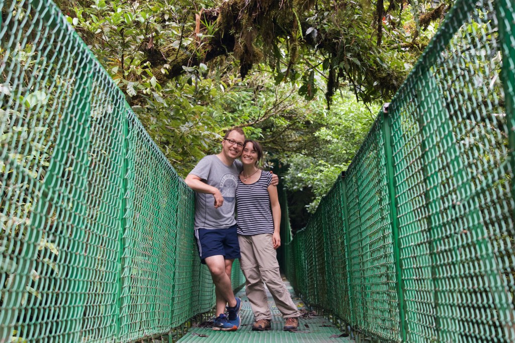 Am nächsten Tag machen wir eine 6km lange Wanderung im Reservat Santa Elena, eines der beiden „Nebelwaldreservate“ hier. Es ist wunderschön, durch den verwunschenen Märchenwald zu laufen. Der Wald hier ist ganz anders, als der typische tropische Regenwald. Und nein, das grün auf den Fotos ist nicht nachbearbeitet. 😉 Am Ende der Wanderung wird es nach zunächst sonnigem Wetter sogar noch nebelig, was dem Wald einen noch mystischeren Eindruck verleiht. Simona und Flo wetten, wann es wohl heute zu regnen beginnt. Simona gewinnt. Sie hat auf 14 Uhr getippt, es fängt aber trotz Nebel erst um 16 Uhr an, zu regnen. Flo war mit seiner Einschätzung von 12:30 Uhr viel zu pessimistisch, obwohl er sich ja am Vortag noch sehr optimistisch mit 50er Sonnencreme eingeschmiert hat. 😉