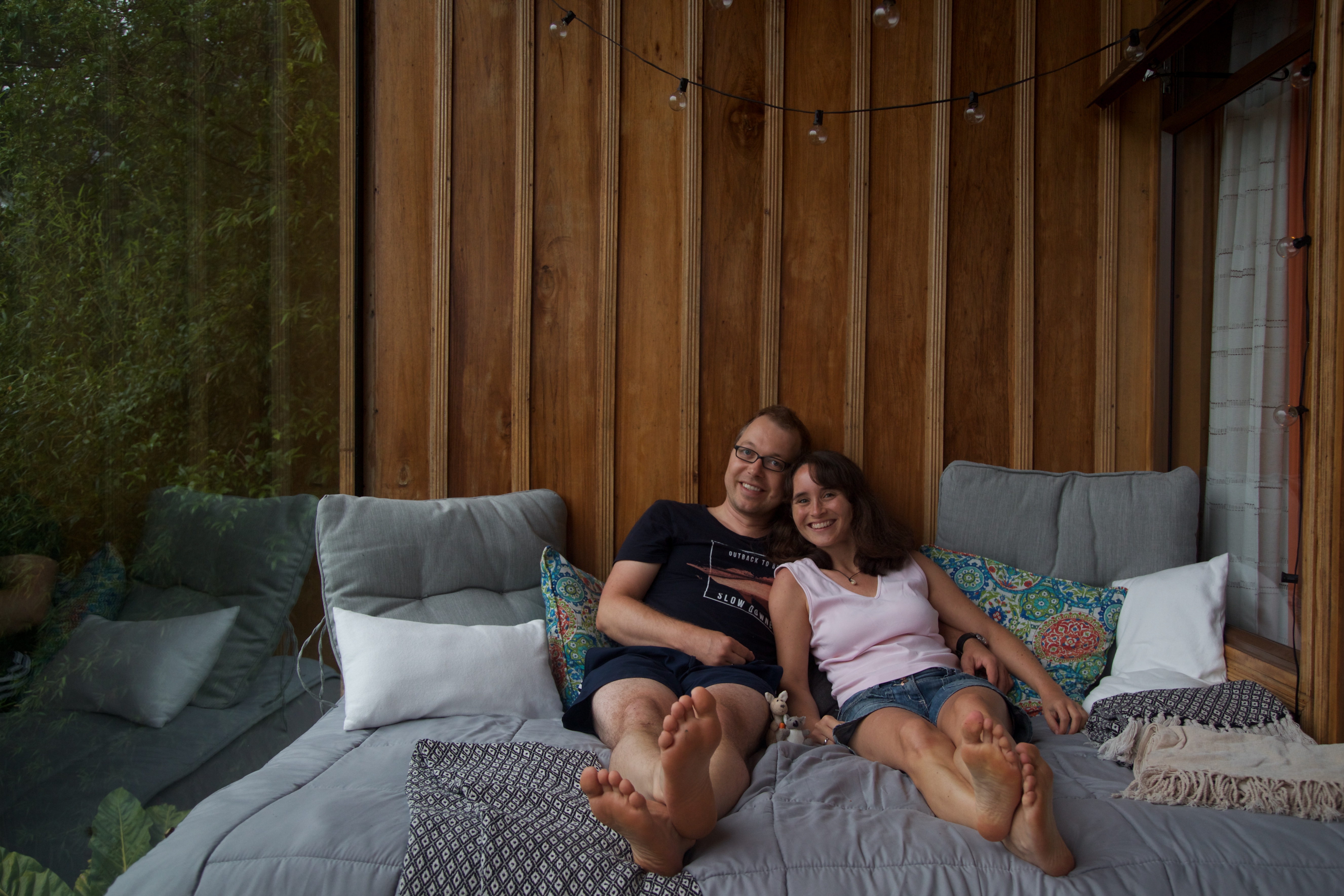 Nach einem kurzen Einkauf beziehen wir unser kleines ruhiges Häuschen, das ca. 2km außerhalb des Zentrums wunderbar ruhig am Waldrand liegt. Auf dem Balkon gibt es eine gemütliche und geschützte Sofaecke, auf der wir uns direkt mal nieder lassen. Hier in den Bergen auf ca. 1500m ist es mit 22-24 Grad sehr angenehm kühl im Vergleich zu den letzten Tagen.