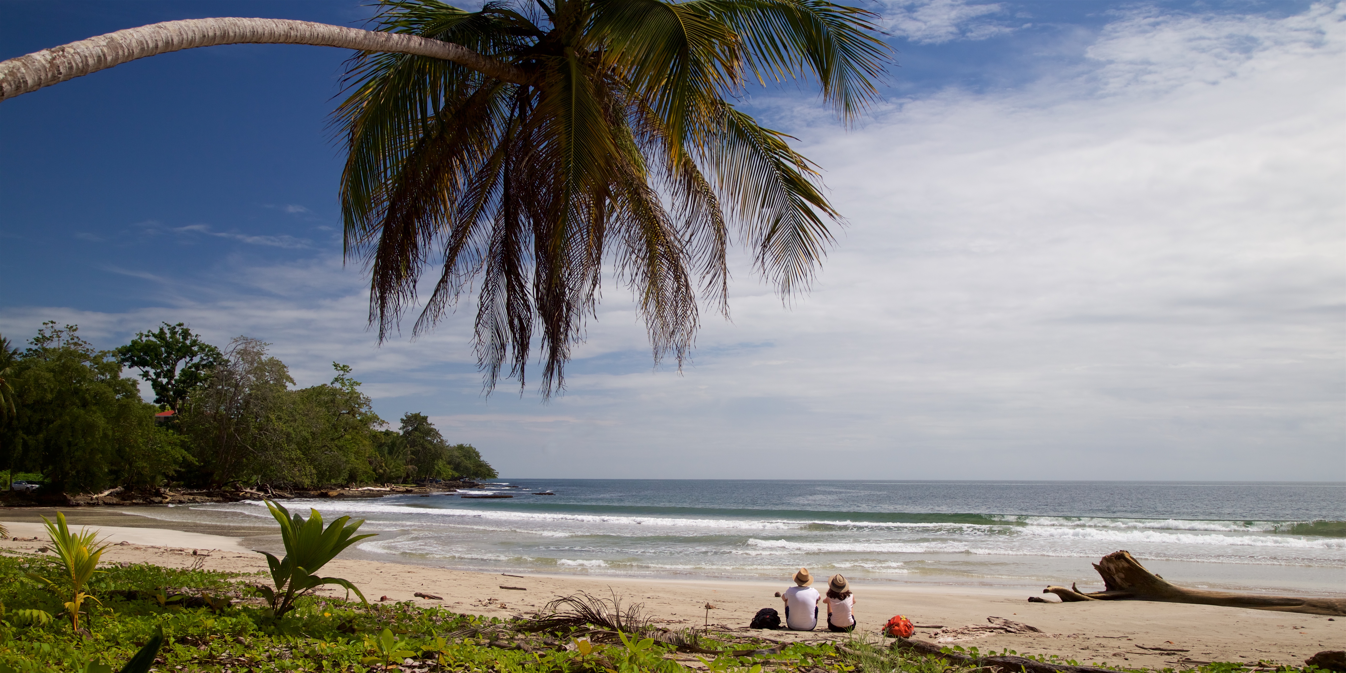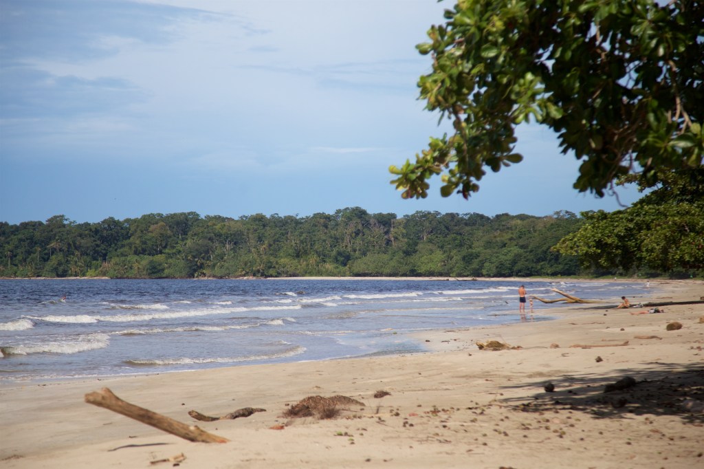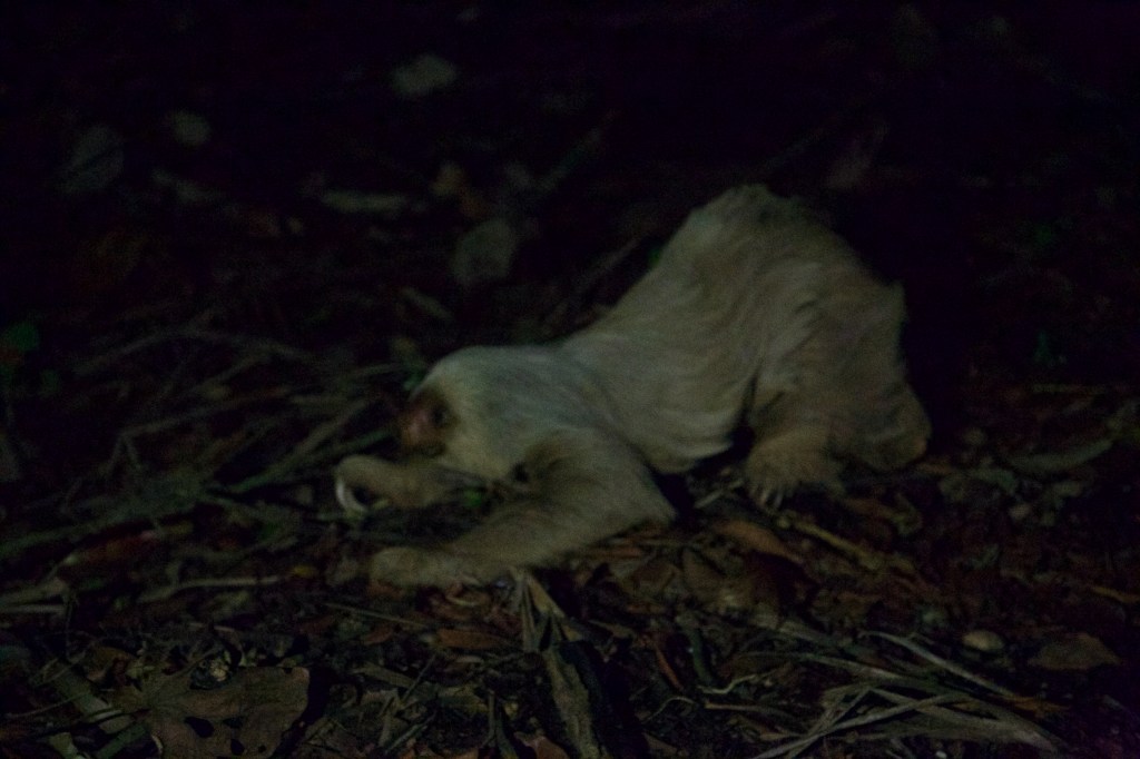 Nach einem extrem leckeren Essen im Restaurant beschließen wir, mit unseren Getränken noch zum Strand zu gehen. Simona hatte dort schon vor dem Essen ein weiteres Faultier im Baum entdeckt. Nachdem wir uns auf den Strandliegen nieder gelassen haben, geht Flo mal gucken, ob es noch da ist. Und tatsächlich – es ist noch da, und aufgrund fortgeschrittener Stunde überaus aktiv. Wir treffen ein anderes sehr nettes deutsches Paar in unserem Alter und zeigen ihm unseren Sloth-Fund. Sie sind auch total begeistert und wir beobachten zusammen, wie das Faultier vom Baum herunterkommt und sein Geschäft erledigt. Klingt jetzt nicht so sensationell, aber wenn man bedenkt, dass Faultiere nur einmal pro Woche von ihrem Baum herunterkommen, um ihr Geschäft an der Wurzel des selben Baumes sozusagen als Dünger zu verrichten, ist das schon bemerkenswert, dass wir live dabei sind. Wir verstehen uns so gut mit dem deutschen Pärchen, dass wir den Rest des Abends zusammen am Strand verbringen und noch das ein oder andere Getränk von der Hotelbar holen. Schade, dass die beiden nicht zufällig aus Aachen kommen.