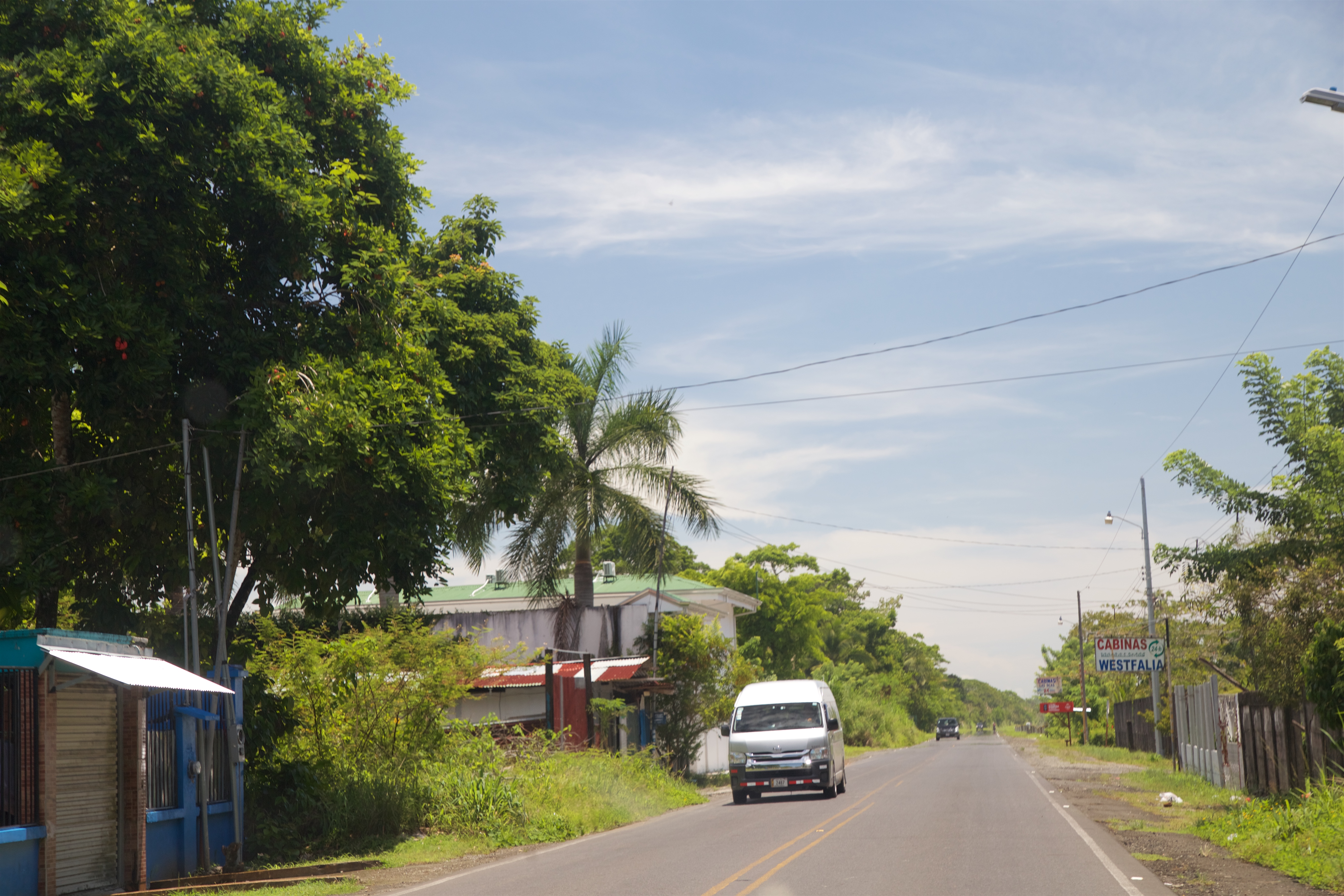 Vom Valle Orosi aus sind es noch 60km bis zum Flughafen. Da die Besiedlung jetzt immer dichter wird, brauchen wir auch ohne kurvige Straßen, Erdrutsche oder Schlaglöcher über zwei Stunden. Da wir uns das gedacht haben, sind wir früh genug losgefahren und können uns während der langsamen Fahrt entspannt das bunte Treiben auf den Straßen angucken. Da wird auf der Autobahn herumgelaufen, in der Hoffnung, eine Tüte getrocknete Nüsse oder eine Kokosnuss („Pipa fria“) zu verkaufen. Oder ein Rasenmäher auf dem Fahrrad transportiert. Oder es wird ein Motorrad im Kofferraum einer Kleinwagenlimousine verstaut.